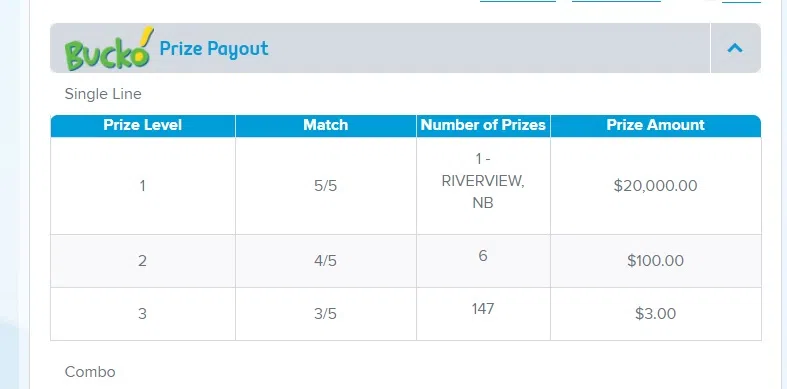 Winning Bucko Ticket In Riverview Moncton, NB, Canada / 91.9 The Bend Tara Clow Jan 27, 2021 | 8:17 AM Bruce Guenter / CC If you play Bucko through the Atlantic Lottery Corporation, today could be your lucky day. Someone who bought a ticket in Riverview for last night’s draw, matched all five numbers in one line. The prize is $20, 000. . (Photo: ALC) (Photo: ALC)