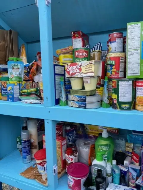 The cupboard, filled with non-perishable food and other items is at the Webb Vance Memorial Field on Whitepine Road in Riverview.