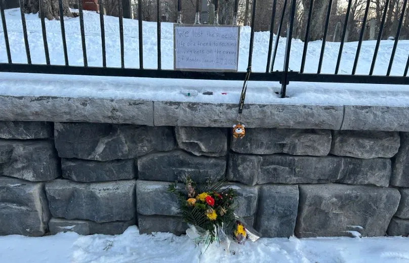 Flowers sit in memoriam of Alexandria Wortman who died in a marked crosswalk in Halifax’s south end. Photo: Jacob Moore/Acadia Broadcasting