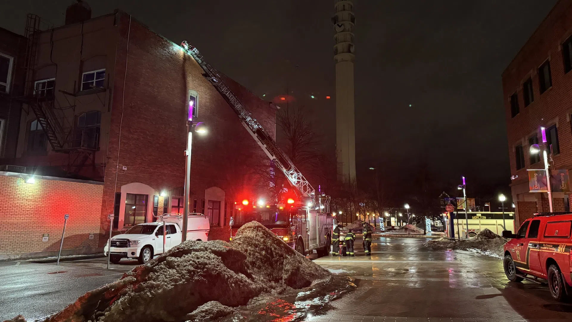 McDonald said firefighters were directed to the rear of the Main Street building, where they located a fire burning on the top floor of the three-storey building.