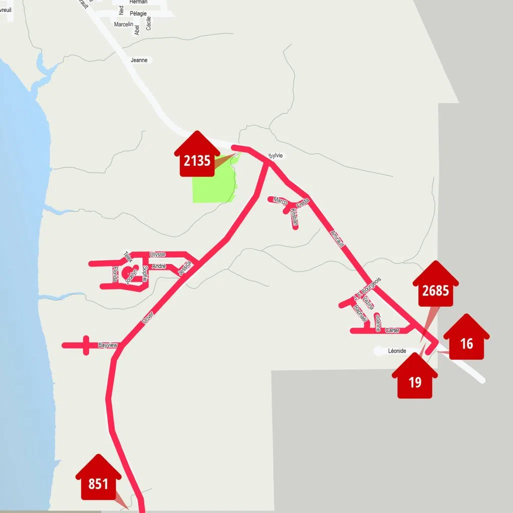 Properties affected are located from 2135 to 2685 Amirault, 16 and 19 Léonide, as well as all residents of André, Bayview, Carter, Dover, Florida, Freda, Jessica, J.F. Bourgeois, Joanne, Jocelyn, Kristian, Marco, Raphaël, Sophie, Telex, Ulysse and Vézina streets, and Domaine Dover Estates.