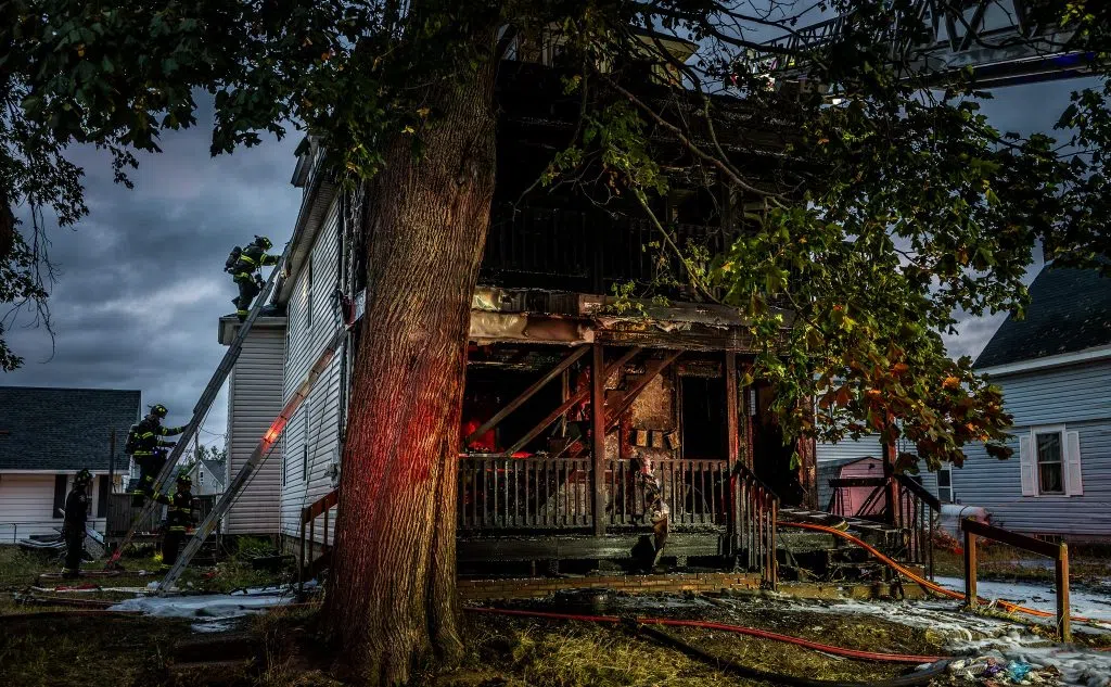 “The fire began on the outside front porch. There was a porch on the main level and on the second level. When the firefighters arrived on scene, the whole front of the house was on fire,” Deputy Chief Keith Guptill told our newsroom.
