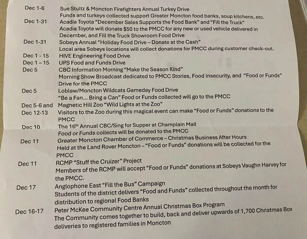 Christmas food box deliveries will be done on December 17 from the Moncton Coliseum. Volunteers traditionally line up in their vehicles in the parking lot on that day to help bring the boxes to the homes of those in need.